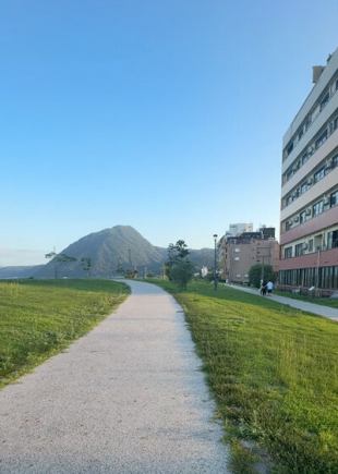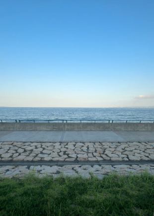 日が傾くころ 暑さはやわらぎ、海風が心地よい目の前の遊歩道。